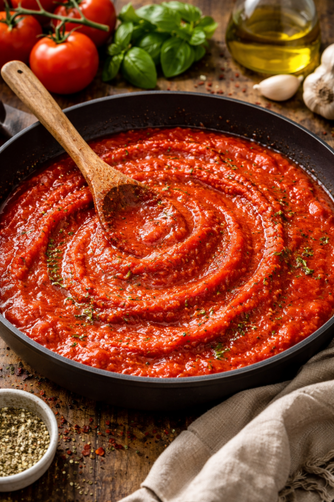 Een goede pizzasaus vormt de smaakbasis van elke pizza. De klassieke tomatensaus is eenvoudig, maar ongelooflijk smaakvol wanneer hij wordt bereid met de juiste ingrediënten: rijpe tomaten of San Marzano tomaten uit blik, een scheut olijfolie, knoflook en een mix van Italiaanse kruiden zoals oregano en basilicum. Het mooie aan pizzasaus? Je hoeft hem niet te koken. Door de saus rauw te houden, karamelliseert hij tijdens het bakken en behoudt hij zijn frisse tomatensmaak.