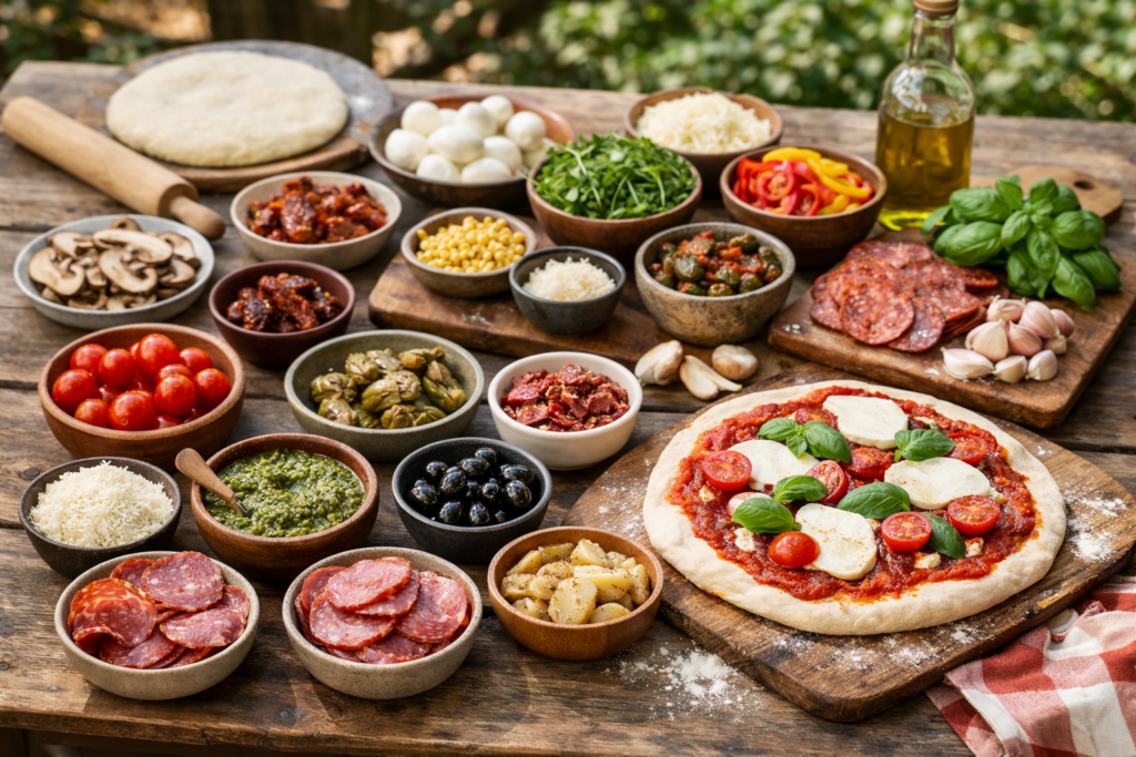 Een pizza‑avond wordt extra leuk als iedereen zelf zijn pizza maakt. Zet alle ingrediënten op tafel en laat je gasten hun eigen smaken ontdekken. Zo hoef jij niet de hele avond achter het aanrecht te staan.